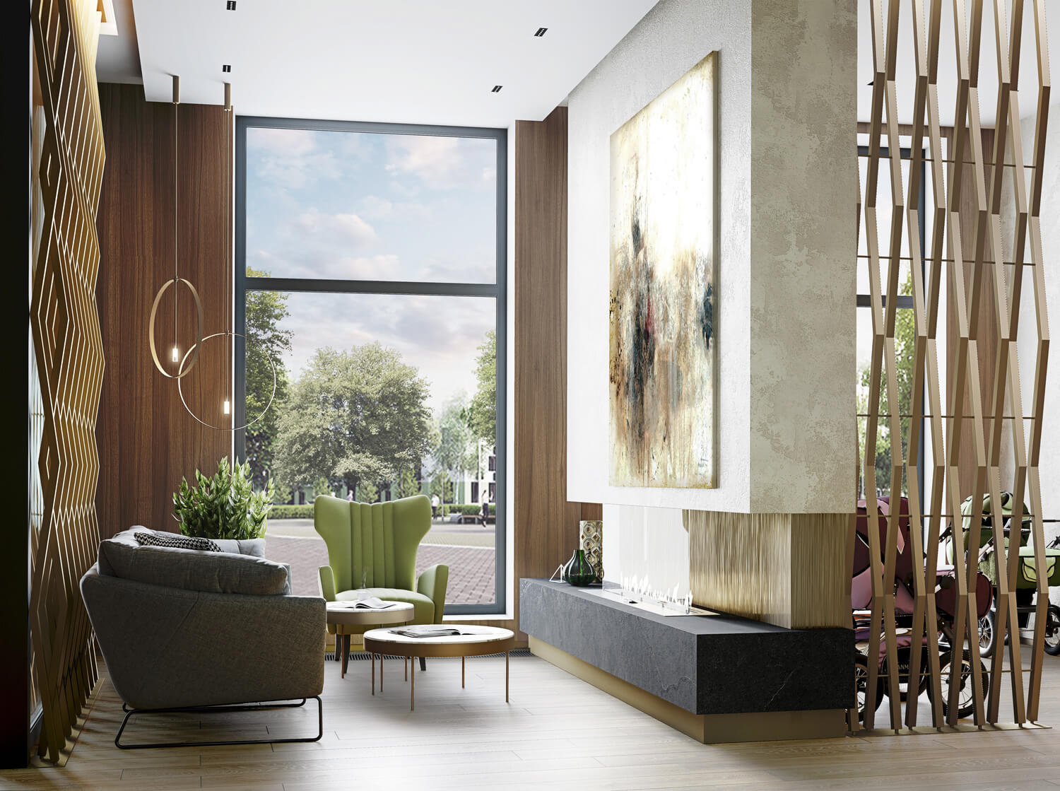 В удобных домах созданы красивые и функциональные лобби. Они выполнены в спокойных благородных тонах, в них удобные сквозные подъезды, есть колясочные и гостевые санузлы. Высота потолков в лобби достигает 4,5 метра. На комфортном подземном паркинге предусмотрена автомойка.