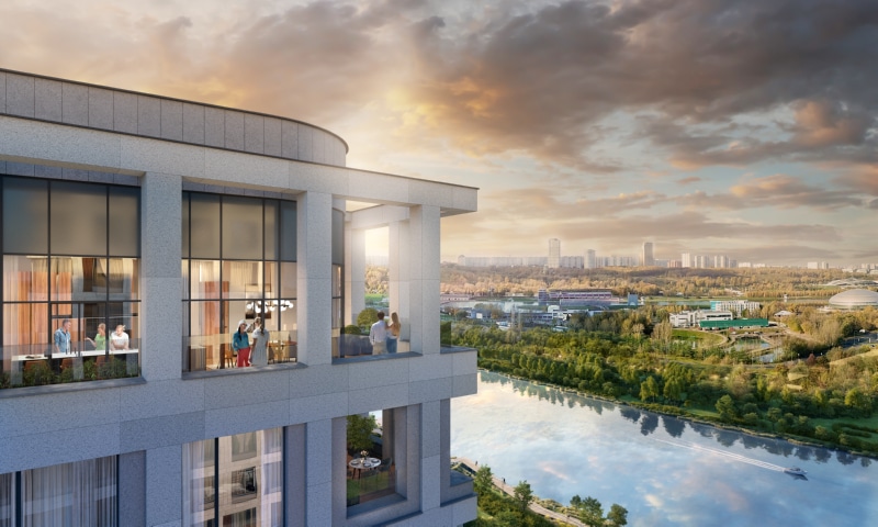 ОСТРОВ от Донстрой - жилой комплекс на западе Москвы, в Мневниковской пойме. Уникальное преимущество комплекса - в том, что он обособлен от города рекой и природным парком (650 га). Благодаря природному окружению эта территория имеет лучший экологический рейтинг в столице.