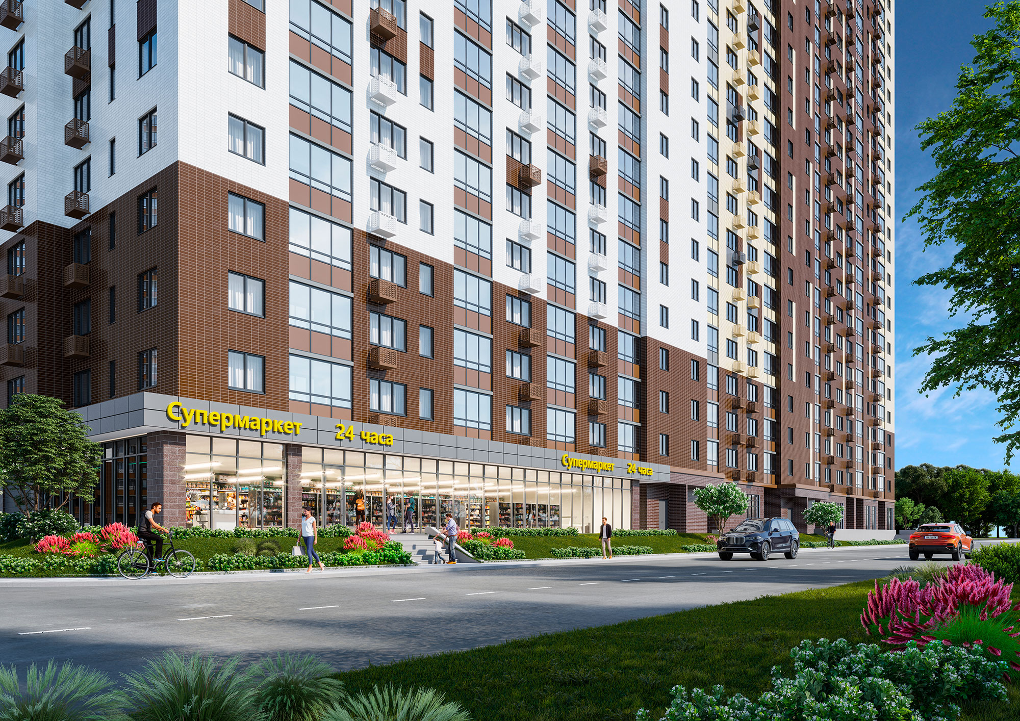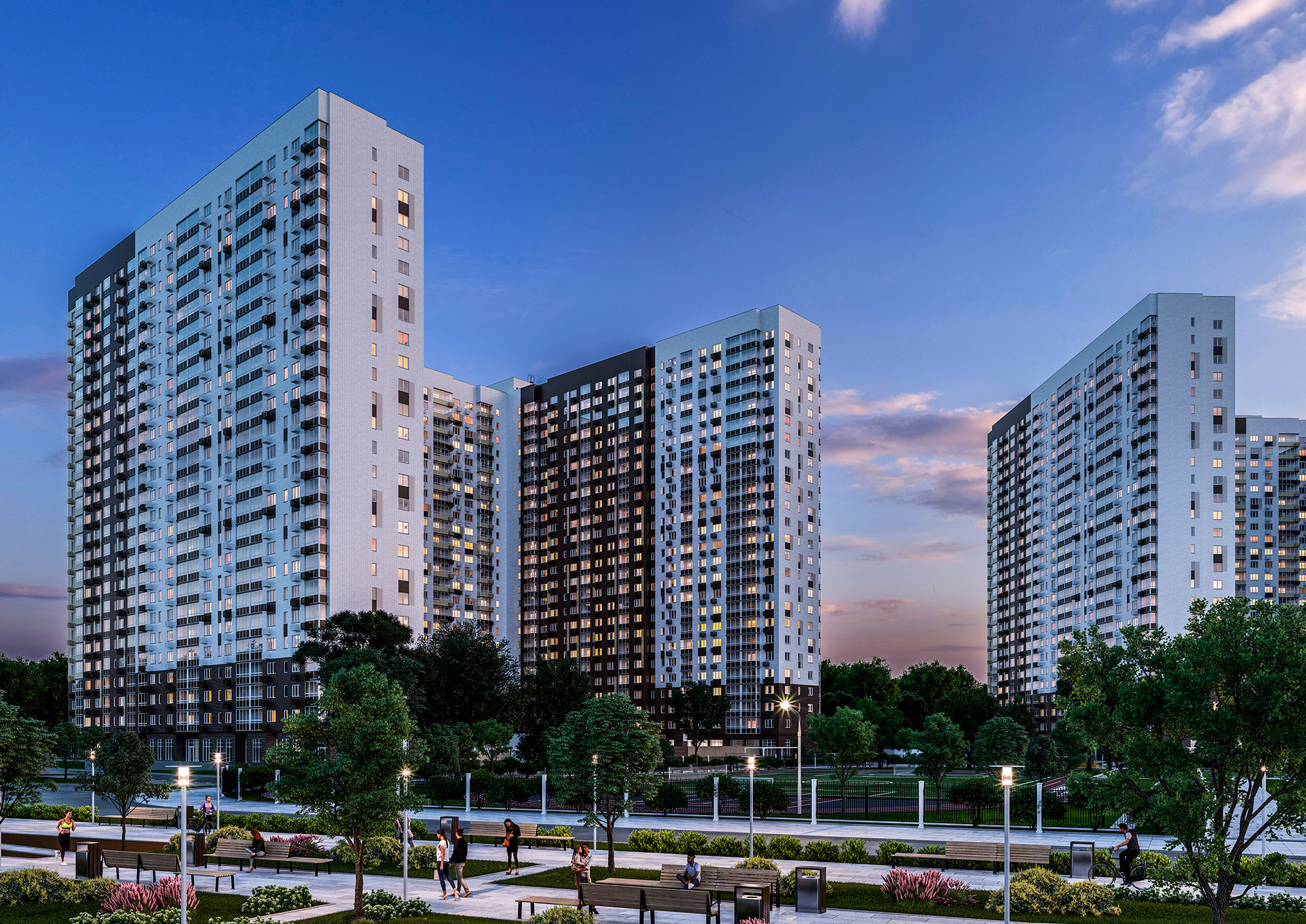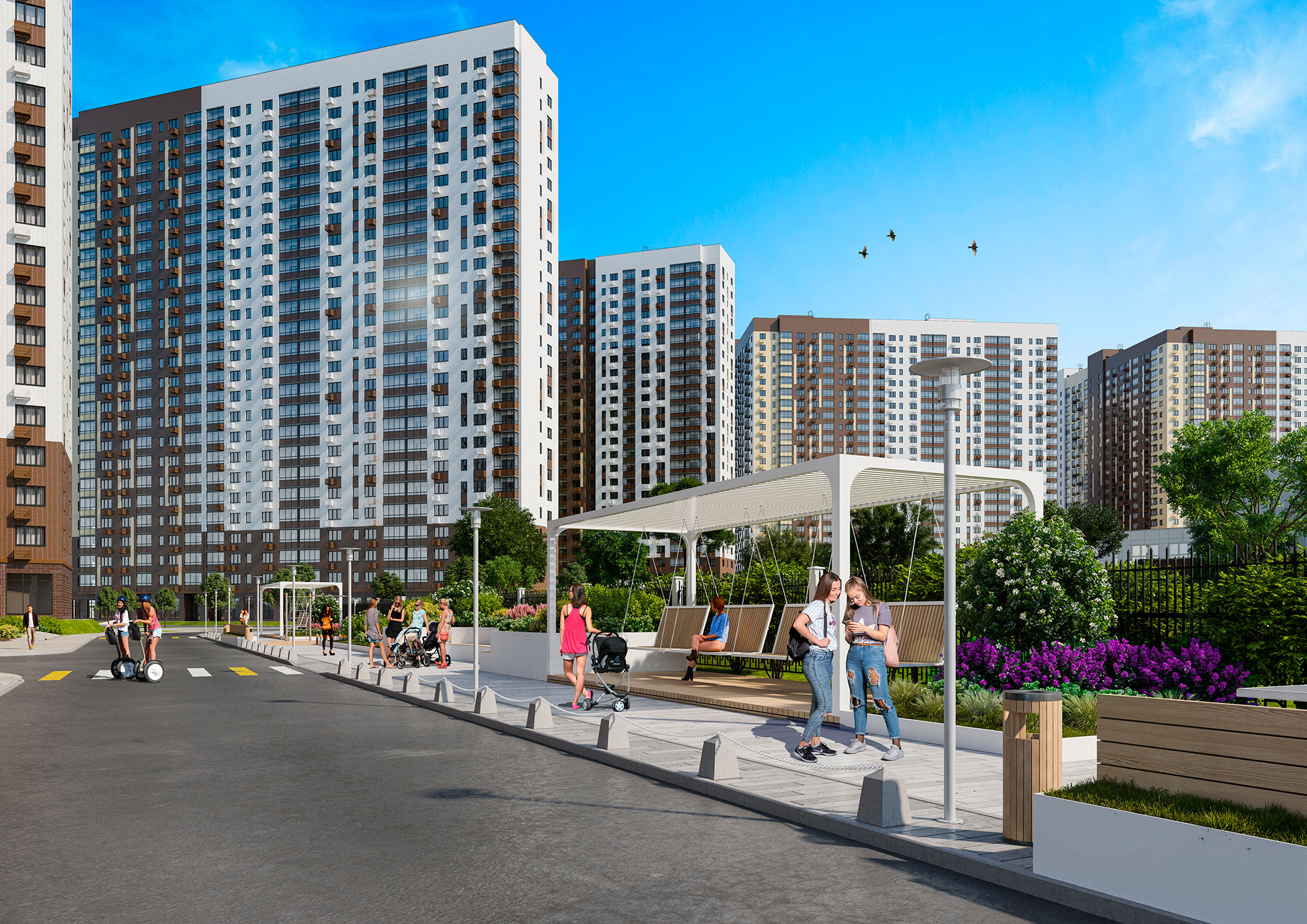 - продуманная инфраструктура: муниципальная школа и детский сад, наземный и подземные паркинги, супермаркеты, кафе, аптеки, пекарни и другие предприятия сферы услуг на первых этажах;