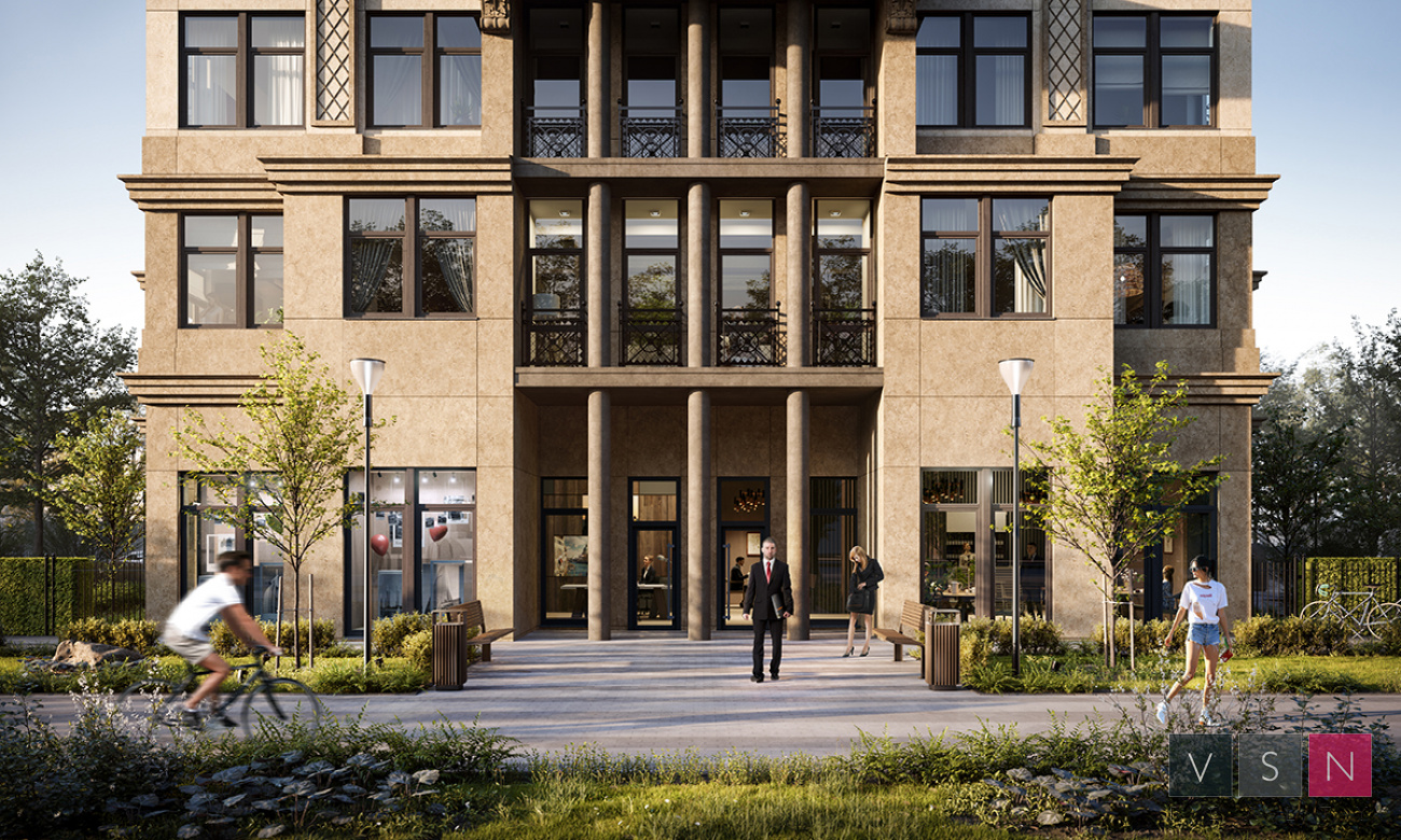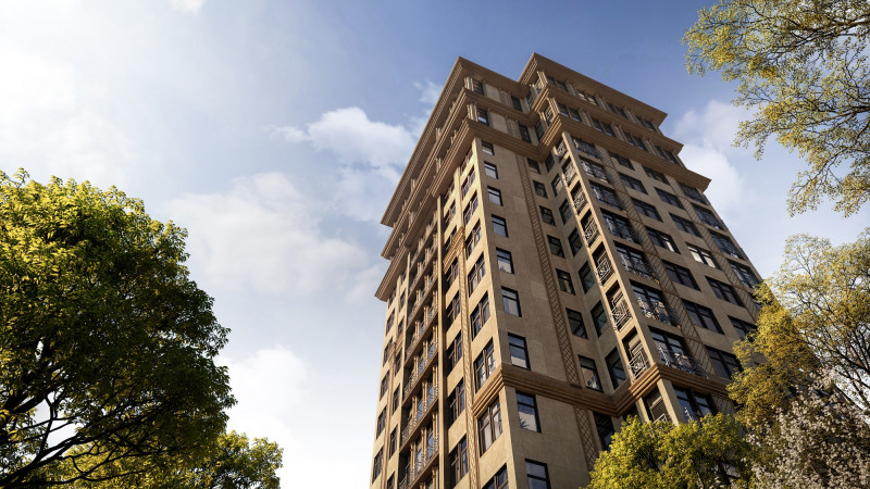 Авторская архитектура, четкий ритм фасадов и респектабельный внешний облик здания делает его заметной доминантой окружающей застройки. Небольшая этажность дома - всего 13 этажей и 56 квартир позволят создать добрососедскую атмосферу. Широкий диапазон планировок квартир площадью от 68,5 до 171,3 кв. м с разделением на гостевую и приватную зону и высокими потолками до 6,35 м. позволяет выбрать именно ту, которая придется вам по душе: с мастер-спальней с собственной ванной комнатой или гардеробной, с окном в зоне готовки на кухне или окном в гардеробной, со светлыми спальнями с двумя окнами. Окна квартир на 12-13 этажах выходят на три стороны света, пентхаусы отличаются панорамным остеклением и возможностью установки камина.