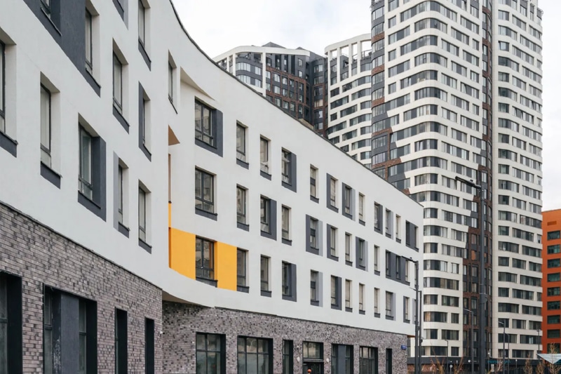 Ни один дом в квартале не похож на другой, у каждого – своё «лицо». Вентилируемые фасады отделаны безопасными материалами премиального качества с уникальными элементами, выполненными на заказ. Входные группы с отделкой по авторским дизайн-проектам с мягкими зонами ожидания и лаунж-зоны с дизайнерской мебелью на заказ, стойки ресепшн с консьержем, помещения для колясок и мытья лап домашних питомцев, гостевые санузлы. Корпуса оборудованы лифтами премиум-класса с индивидуальным дизайном кабин.