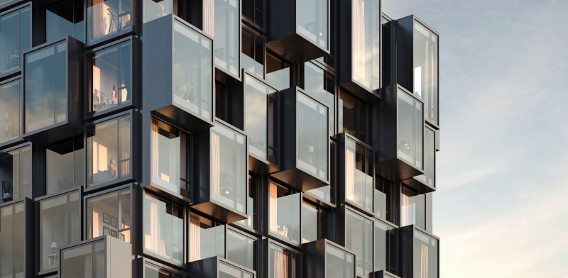 современных башен с яркими фасадами высотой от 24 до 47 этажей.