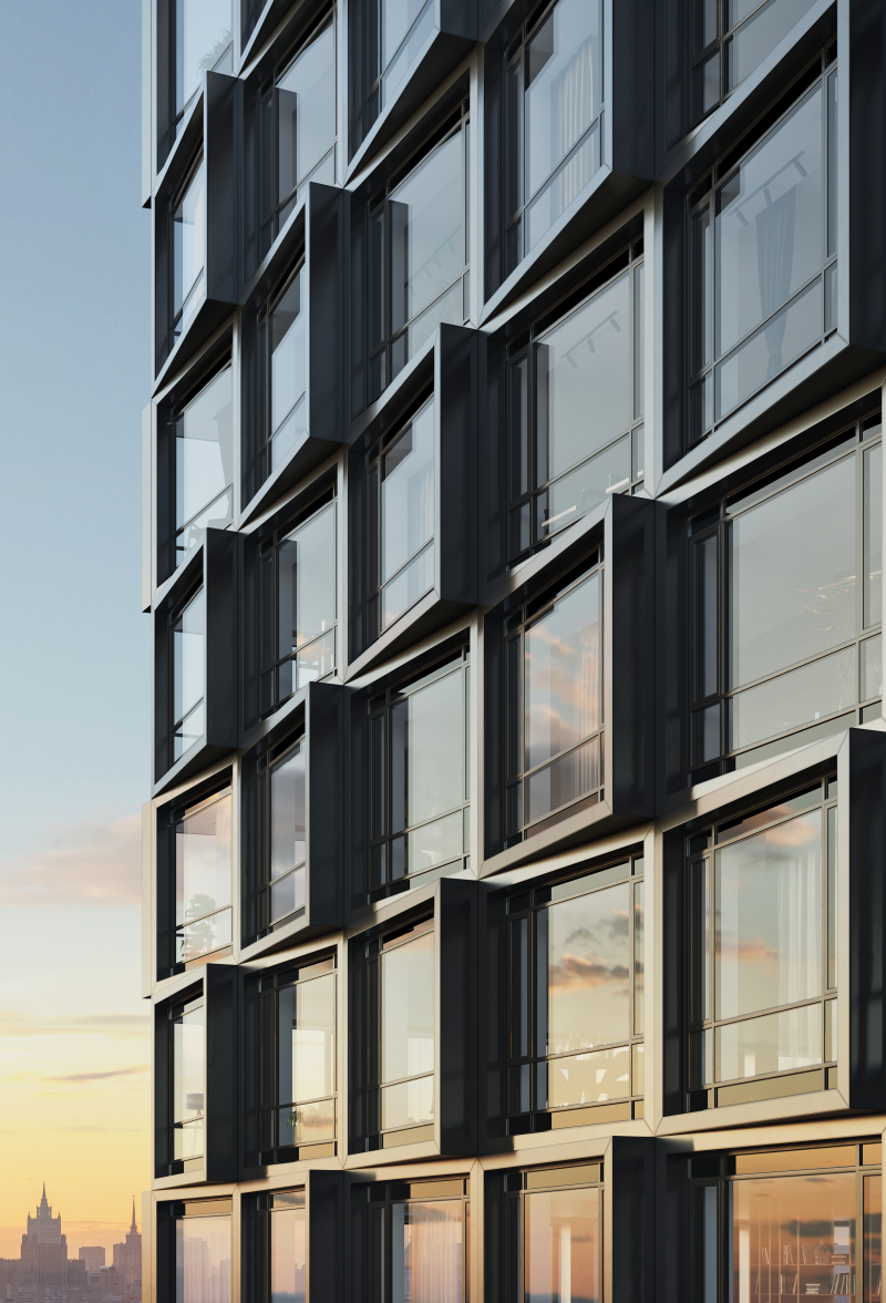 Панорамные окна и изящные эркеры открывают виды на Кремль, МГУ,