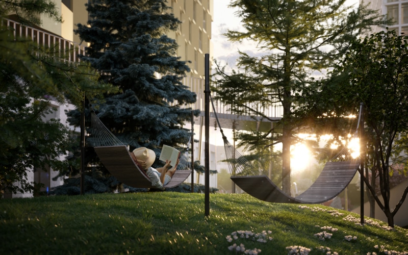 - Многоуровневое благоустройство с зонированием на закрытой территории