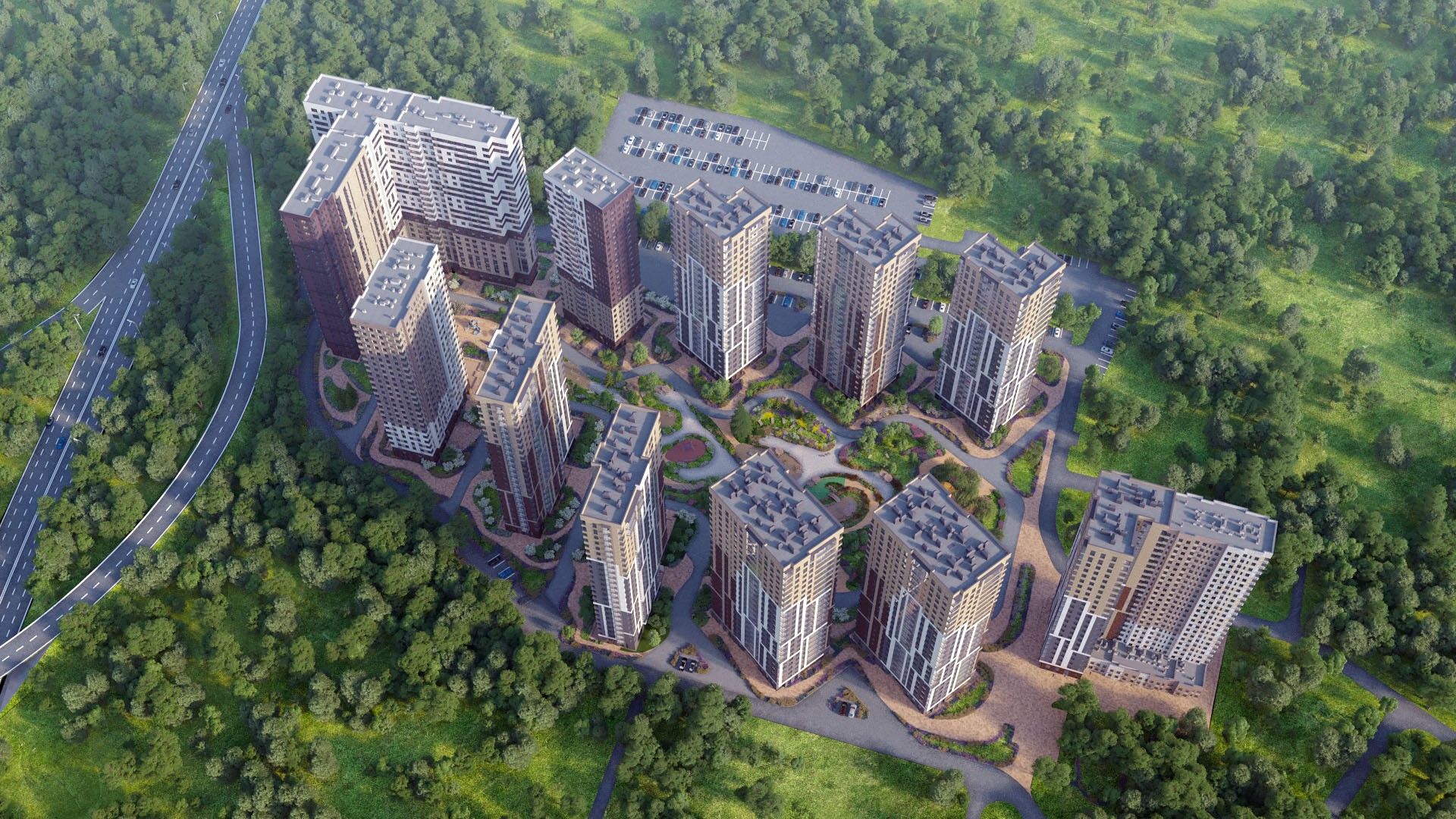 Квартал, окружённый лесными массивами, состоит из 11 монолитных жилых корпусов с закрытой территорией, собственной инфраструктурой и уникальным внутренним двором «Фабрика детства».