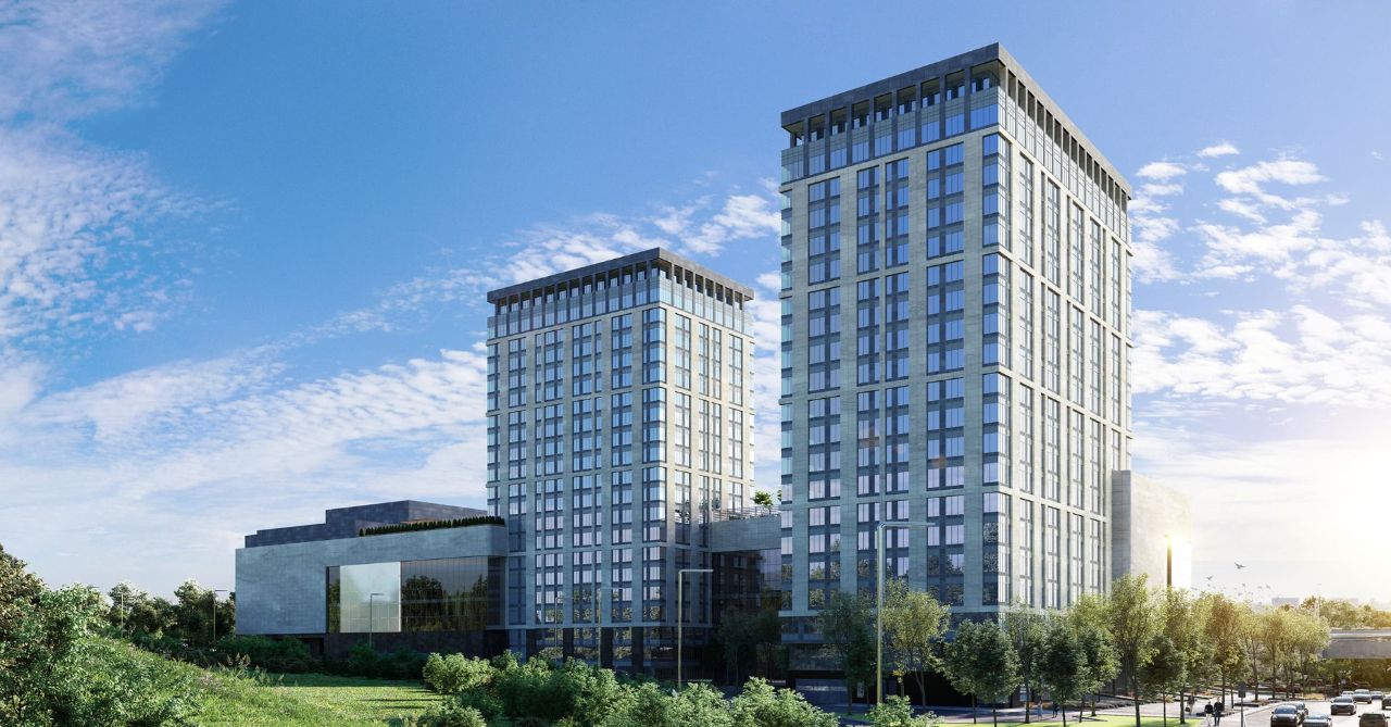 Комплекс состоит из двух 22-этажных башен: бизнес-центра и небоскреба с 277 апартаментами synergy-класса с видом на Долину реки Сетунь. Башни связывает шестиэтажная торговая галерея с собственным экопарком, смотровой площадкой и зонами для отдыха прямо на крыше.