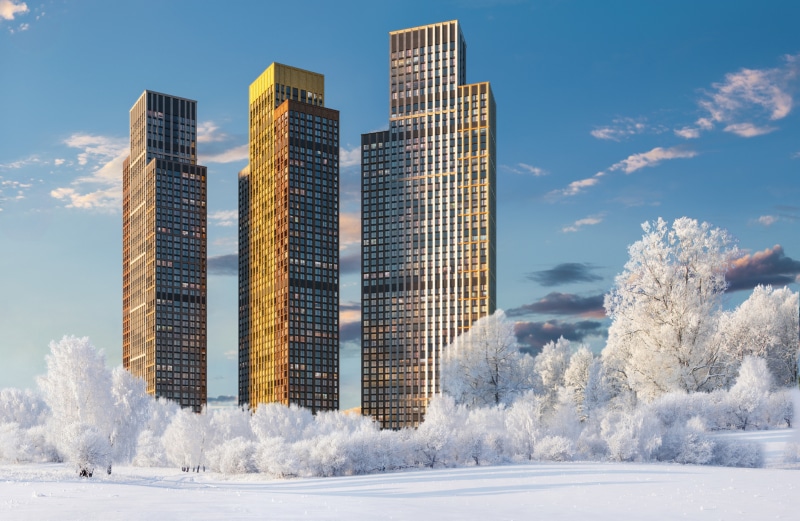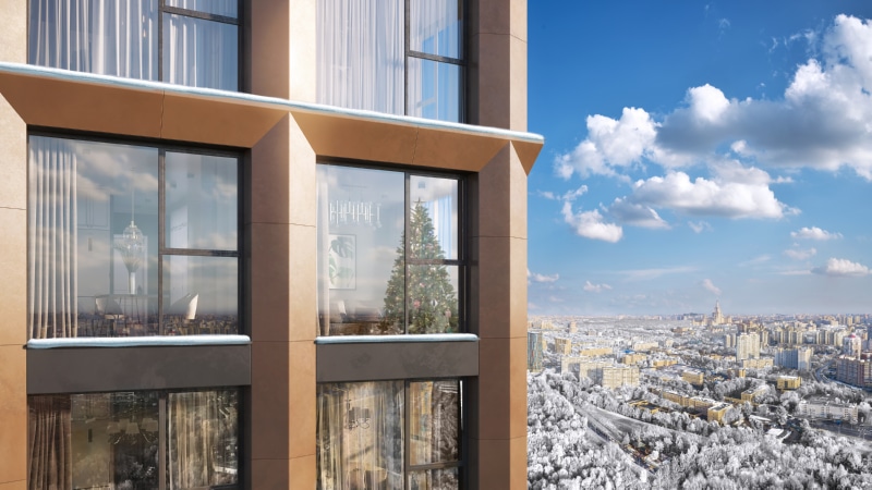 Жилые небоскребы бизнес-класса в ЗАО Москвы. Новая архитектурная доминанта в пойме реки Раменки — одном из самых зеленых районов столицы.