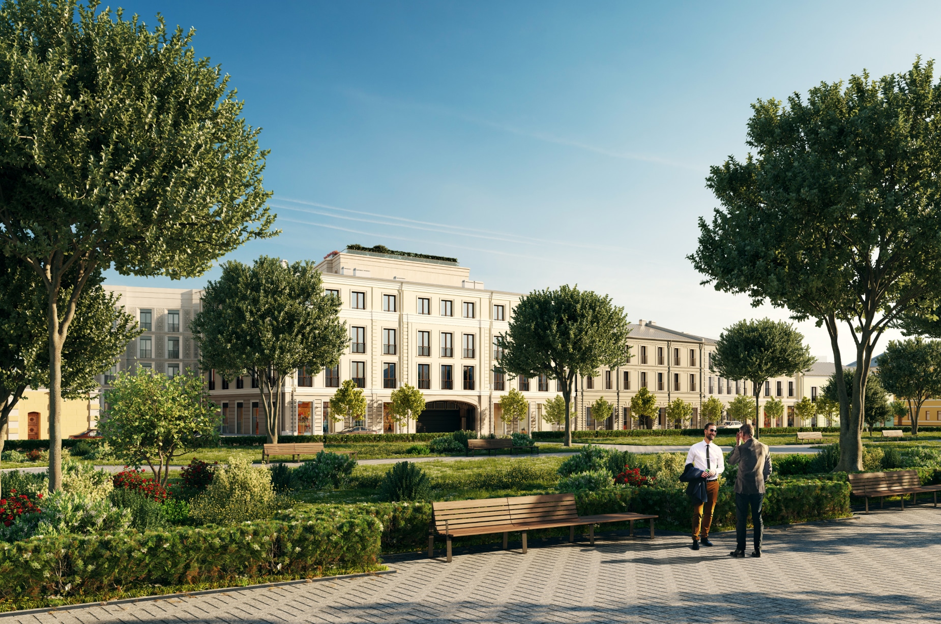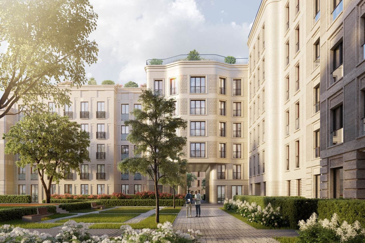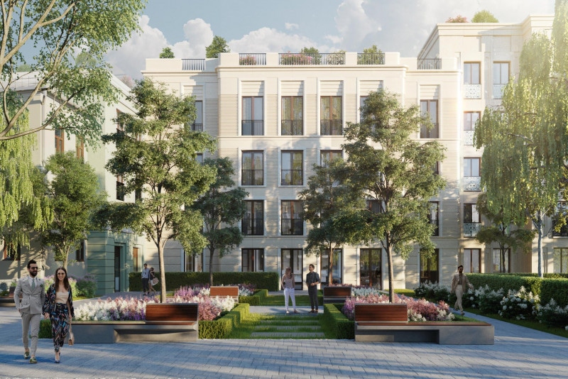 Окружающая территория была благоустроена: построены детская и спортивная площадки, зоны отдыха, а также проведено озеленение. Также доступны открытые гостевые парковки. Рядом с домом находятся школа, магазины, парк и Софийская набережная Москва-реки.
